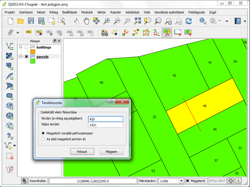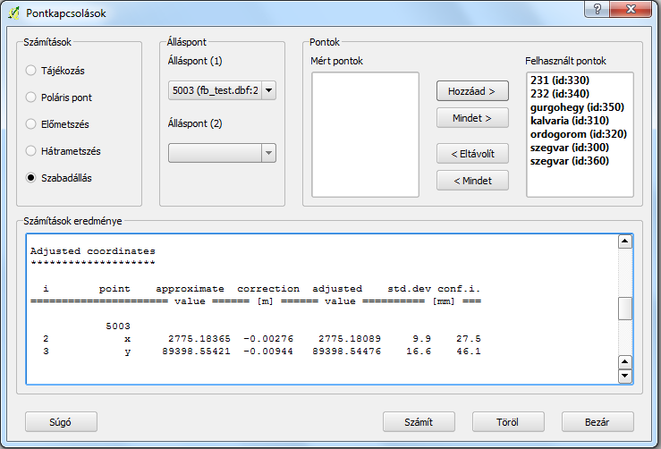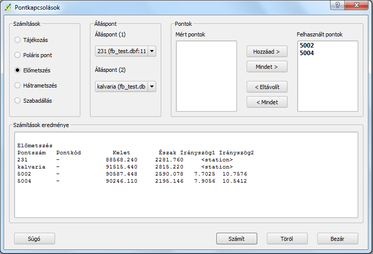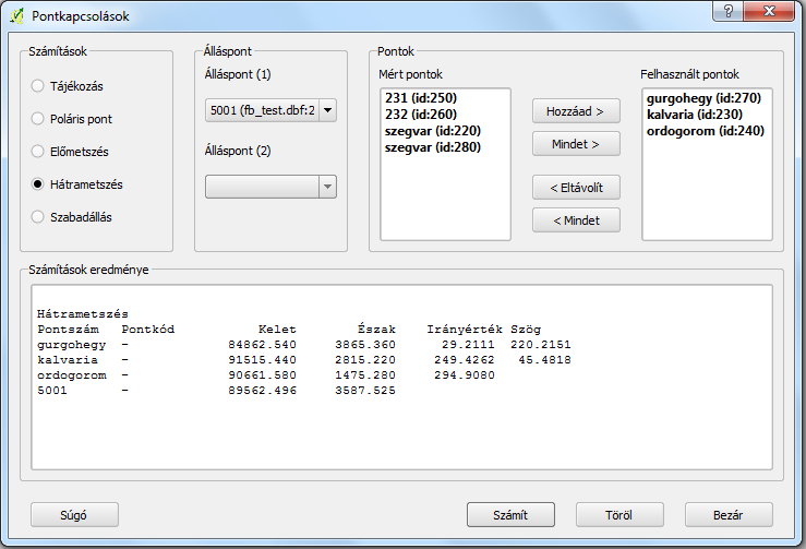 2. QGIS modul tárházból: http://plugins.qgis.org/plugins/SurveyingCalculation/