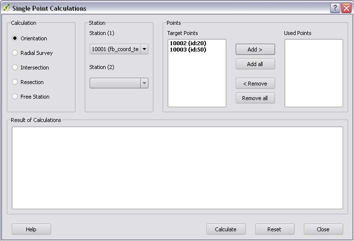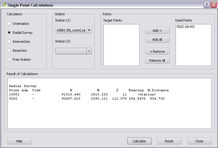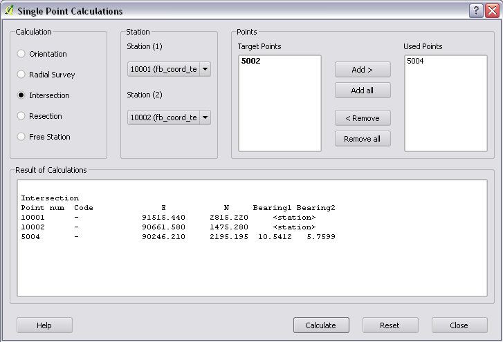 In the single calculation dialog you can calculate coordinates of single points using trigonometric formulas.