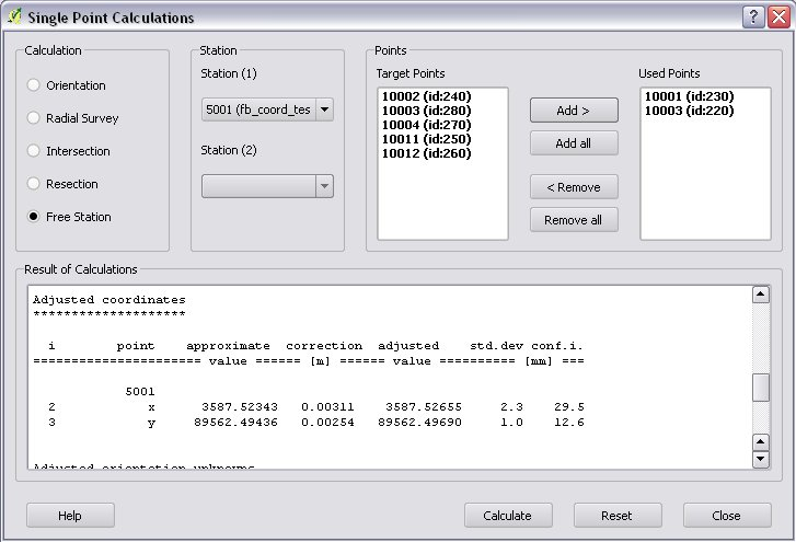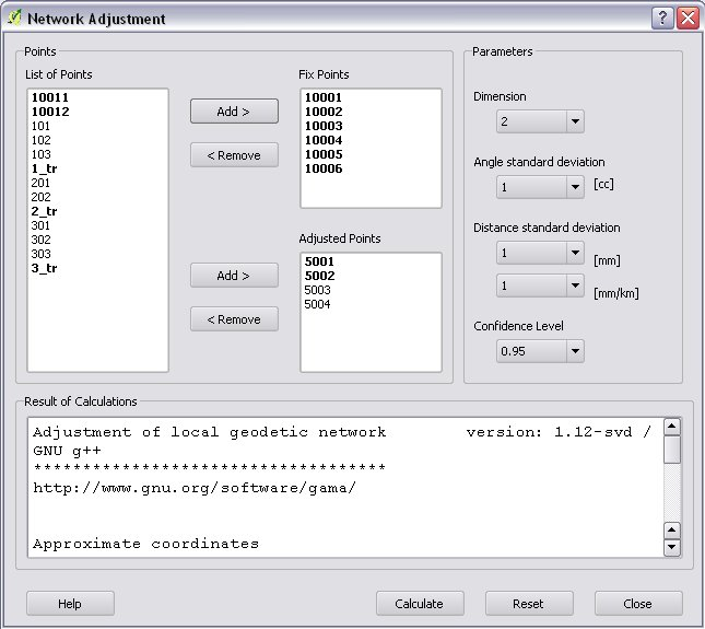 The network adjustment and the free station calculation in the plug-in is based on the GNU Gama open source project. GNU Gama must be installed separately to use these calculations.