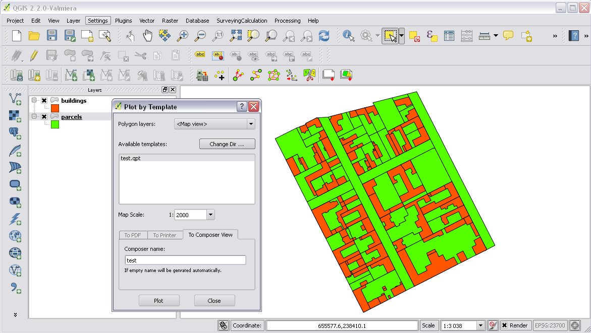 This utility was added to the plugin for the ability to plot land parcels or other polygon type features automatically. The plugin offers two ways to achieve this: